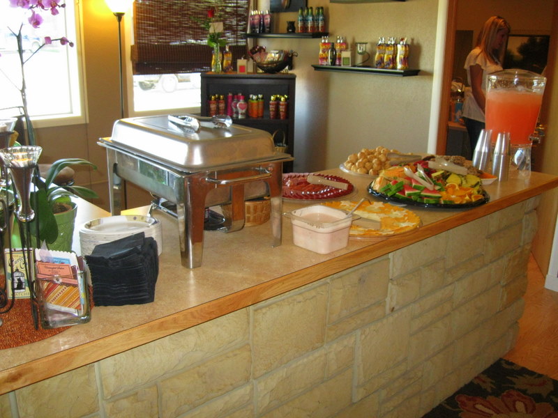Little blurry but this is the hallway to our spa. The spa consists of a waxing room, two tanning rooms, a pedicure room and massage room. I wish there were before pictures to show how ugly this spot used to be. The space used to be a movie store and every wall was painted a bright canary yellow. Amazing what a little paint and TLC will do to a place!